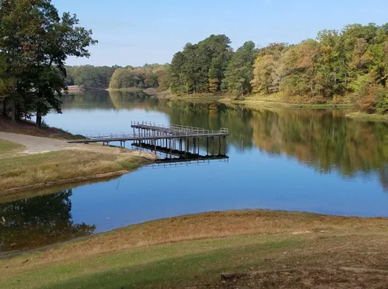 Built by the Civilian Conservation Corps starting in 1934 and opened in 1938, its Historic District was added to the National Register of Historic Places in 1999, featuring picnic areas, pavilions, playgrounds, disc golf, volleyball, a nature trail, 11-mile mountain bike trail, boating dock, and fishing for bass, bream, catfish, and redear.