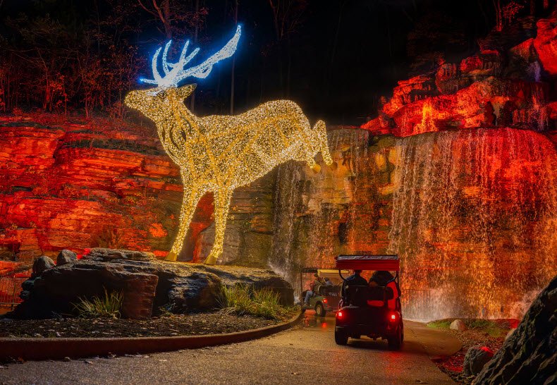 The site features a variety of attractions including the Lost Canyon Cave and Nature Trail, where visitors can explore natural rock formations and waterfalls via a scenic golf cart tour, and the Ancient Ozarks Natural History Museum, which showcases regional history and geology. Guests can enjoy several dining venues, including a wine cellar and the popular Bat Bar inside the cave.