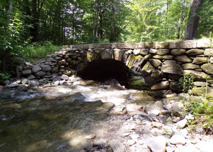 Open from Memorial Day to Labor Day, it features a stone ranger station, hiking trails climbing 1,100 feet to Bald Mountain's summit with waterfalls, chutes, pools, and panoramic views of Rattlesnake Mountain and surrounding valleys. The historic setting evokes old Vermont with stone walls and cellar holes amid dense forests, ideal for quiet camping, picnicking, and nature exploration near Scott Covered Bridge.