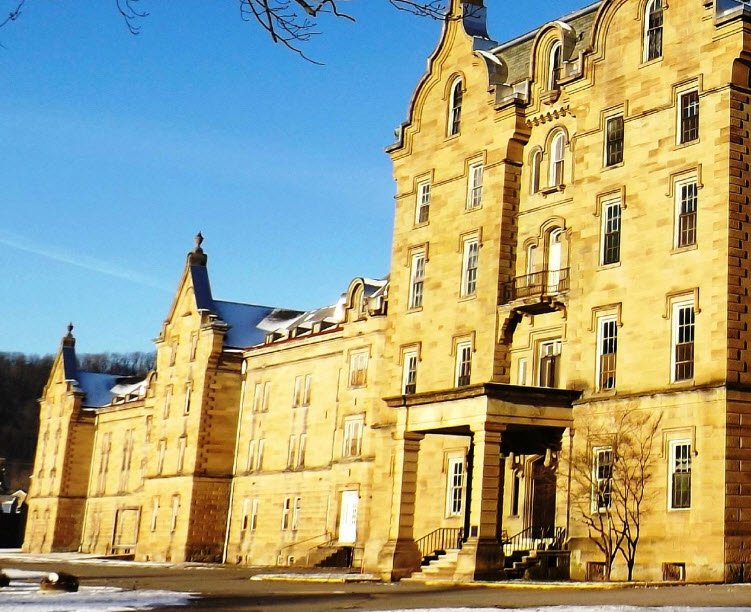 The Trans-Allegheny Lunatic Asylum in Weston, West Virginia, was constructed between 1858 and 1881 and remains one of the largest hand-cut stone masonry buildings in North America.