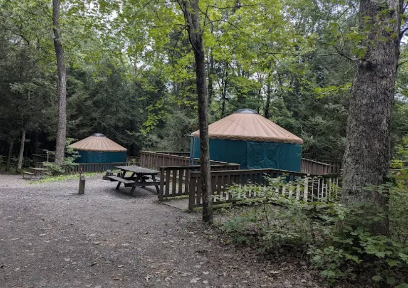 Visitors enjoy modern camping, six cabins, yurts, mountain biking, hunting, birdwatching, and proximity to Broad Mountain's rugged terrain in this quiet Pocono-adjacent retreat.