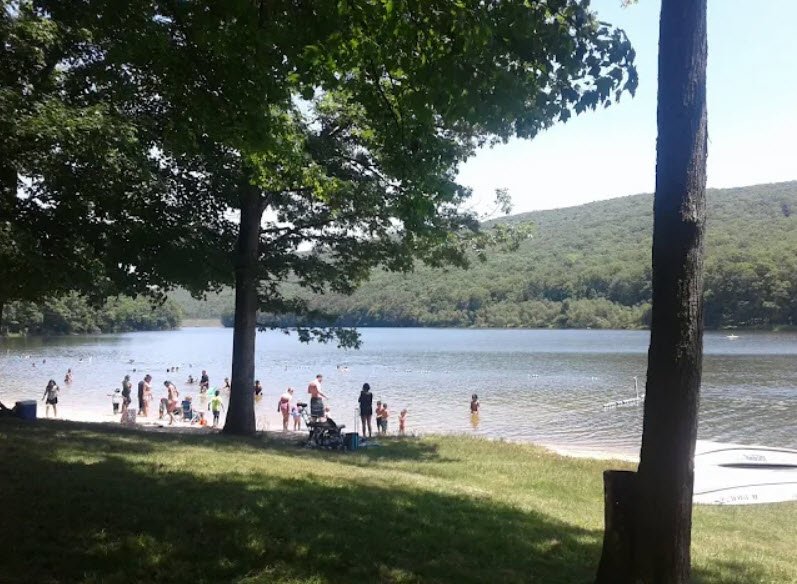 Tuscarora State Park spans 1,618 acres at the base of Locust Mountain in Schuylkill County, Pennsylvania, near Barnesville and Tamaqua, featuring the 96-acre Tuscarora Lake for boating, fishing trout and bass, and seasonal swimming.