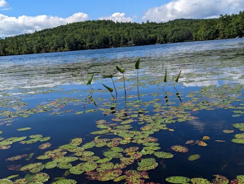 Amenities include a bathhouse, playground, playing fields across the street, and a boat ramp nearby, with a three-mile loop trail circling the lake for scenic views of Mount Kearsarge and wild blueberries on a small island. Open seasonally from mid-May to Labor Day with no pets allowed or campsites offered, it charges a small admission fee and welcomes fishing for bass and perch in a serene, accessible setting near I-89.