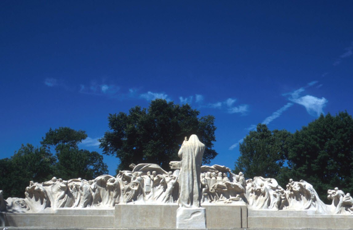 Originally characterized by open meadows where sheep grazed and sports were played, it includes notable architectural features by Burnham & Root such as the limestone refectory and round stables. The park is home to the DuSable Museum of African American History and the iconic "Fountain of Time" sculpture by Lorado Taft.
