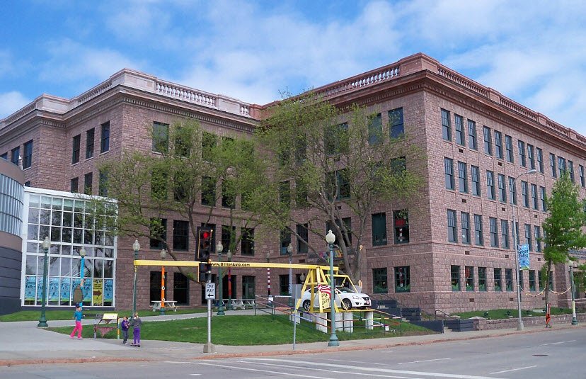 The Washington Pavilion in Sioux Falls, South Dakota, is a vibrant performing arts and science center housed in the historic former Washington High School building, which dates back to the early 20th century and is noted for its neoclassical architecture and Sioux quartzite stone construction.