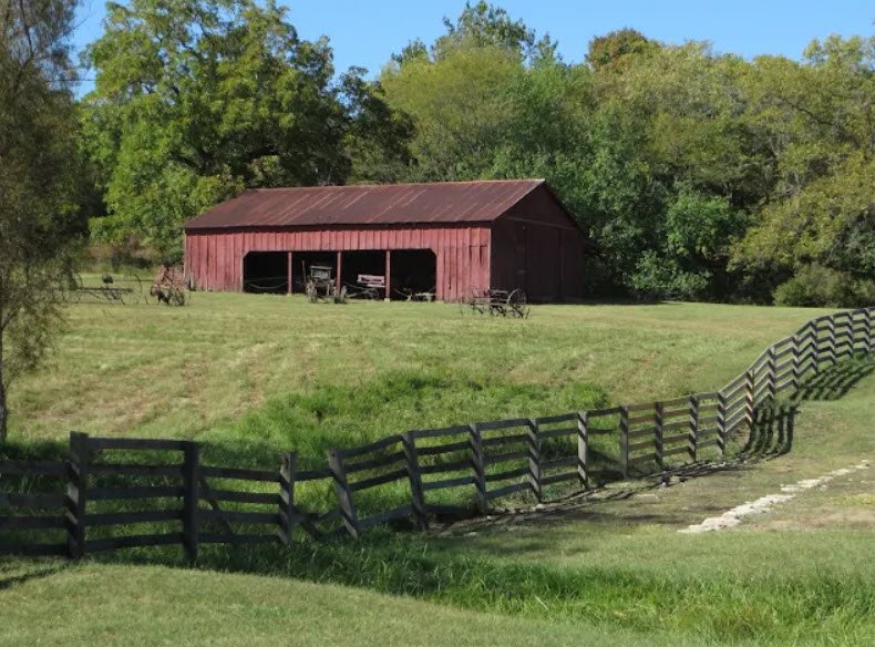 Watkins Woolen Mill State Park and State Historic Site in Missouri preserves a thriving 19th-century plantation and woolen mill near Lawson in Clay County, where Waltus Watkins built a self-sufficient operation starting in 1839 with a brick home, three-story mill powered by a steam engine, gristmill, sawmills, blacksmith shop, barns, and worker housing.