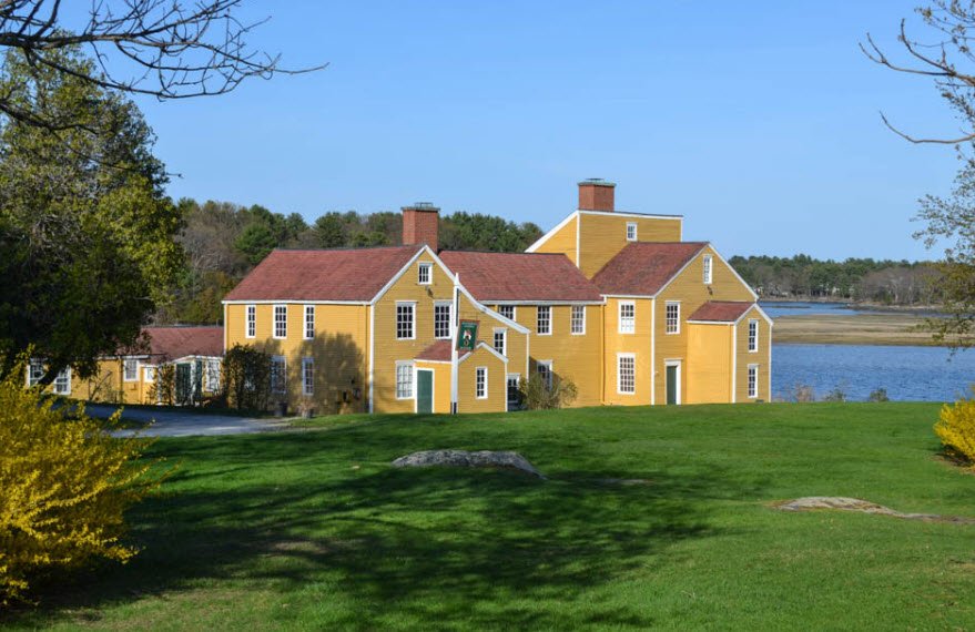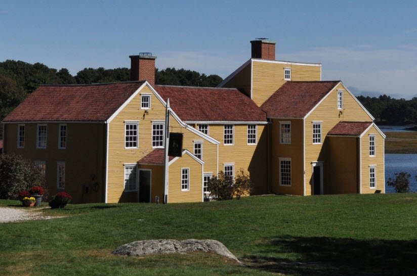 Composed of multiple connected structures finished with high-end plaster and woodwork, it served as the colony's political and social center with council chambers, entertaining spaces, and family quarters amid gardens, barns, and waterfront views, later preserved by the Coolidge family in the 1880s and donated to the state in 1954.