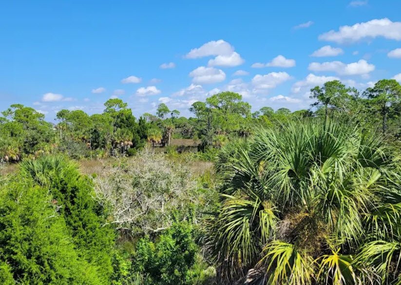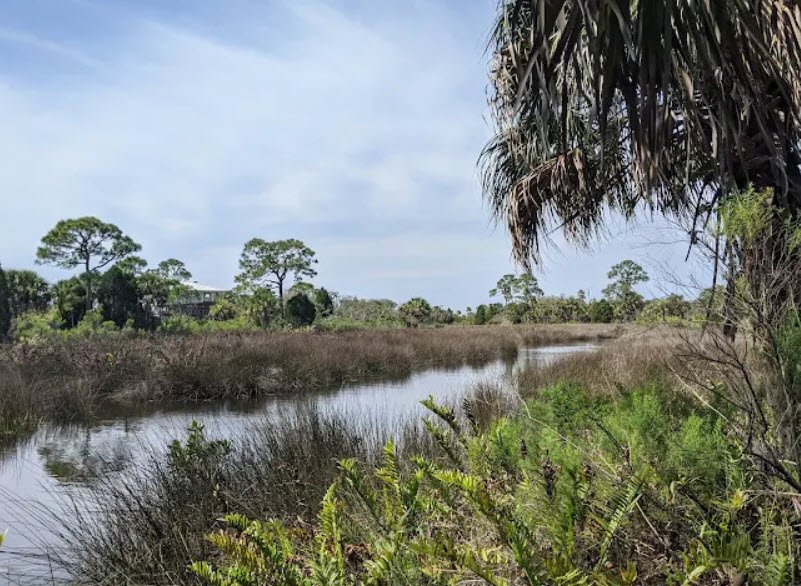 Named for a 320-foot-deep saltwater spring pool and honoring local conservationists, it features small artesian springs, sinks, and a tidal waterfall visible at low tide, plus hiking trails like the Springs Trail through pine flatwoods and oak hammocks, birdwatching platforms for spotting bald eagles, roseate spoonbills, hawks, and migratory species, and paddling routes with kayak rentals available Thursday through Sunday.