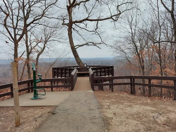 Managed by the Missouri Department of Natural Resources, it features a 3-mile paved trail for hiking and biking through cottonwood, sycamore, and maple forests to secluded picnic spots, an accessible scenic overlook peering into Kansas, a campground, playground, reservable shelters including a historic tobacco barn, and a dog park.