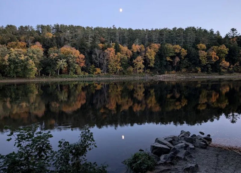 Wilgus State Park spans 100 acres along the Connecticut River in Ascutney, Vermont, offering canoeing, kayaking, fishing, and swimming in its calm waters plus hiking on the steep Pinnacle Trail for valley vistas.