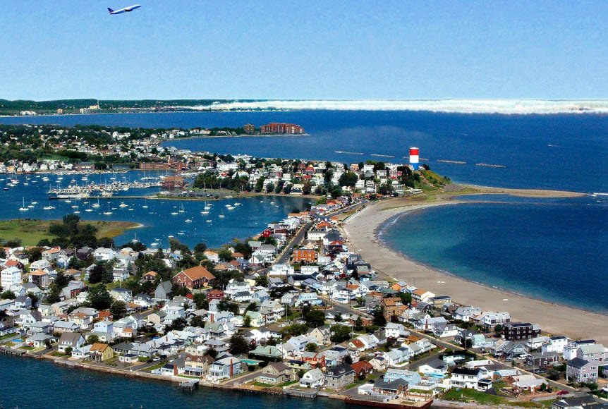 Winthrop, Massachusetts, is a small, densely populated oceanside city in Suffolk County with around 19,300 residents across just 1.6 square miles on a peninsula at the entrance to Boston Harbor, near Logan International Airport.